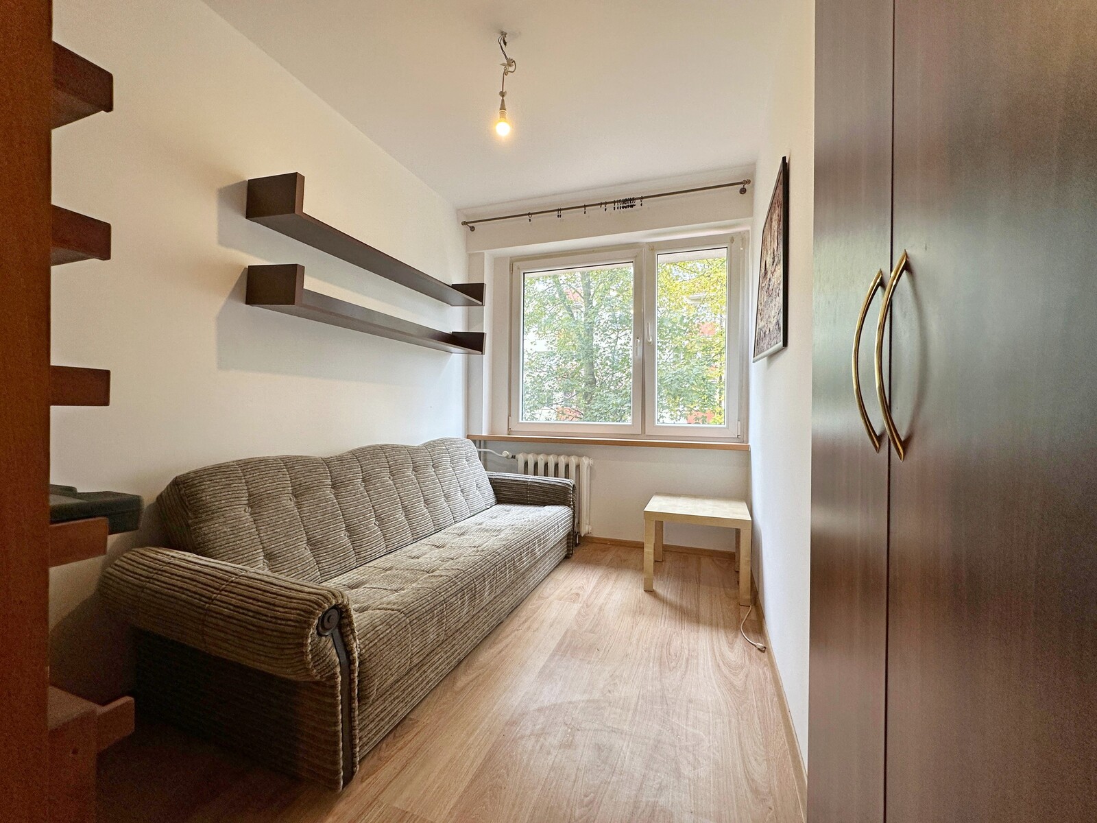 Lokal jest odświeżony i praktycznie gotowy do zamieszkania. Istnieje możliwość wydzielenia dodatkowego pokoju w salonie, co pozwala dopasować przestrzeń do potrzeb większej rodziny. W mieszkaniu znajdują się trzy pojemne szafy.