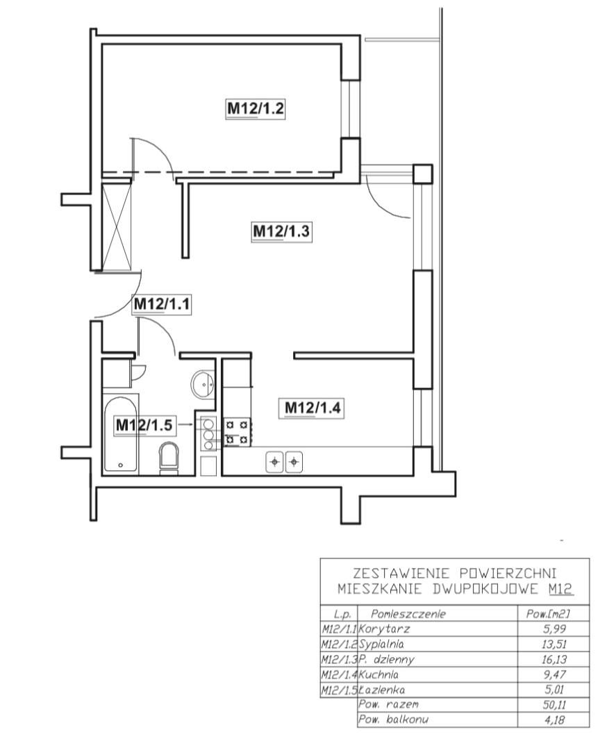 – możliwość powrotu do pierwotnego układu tj. przeniesienie kuchni do sypialni