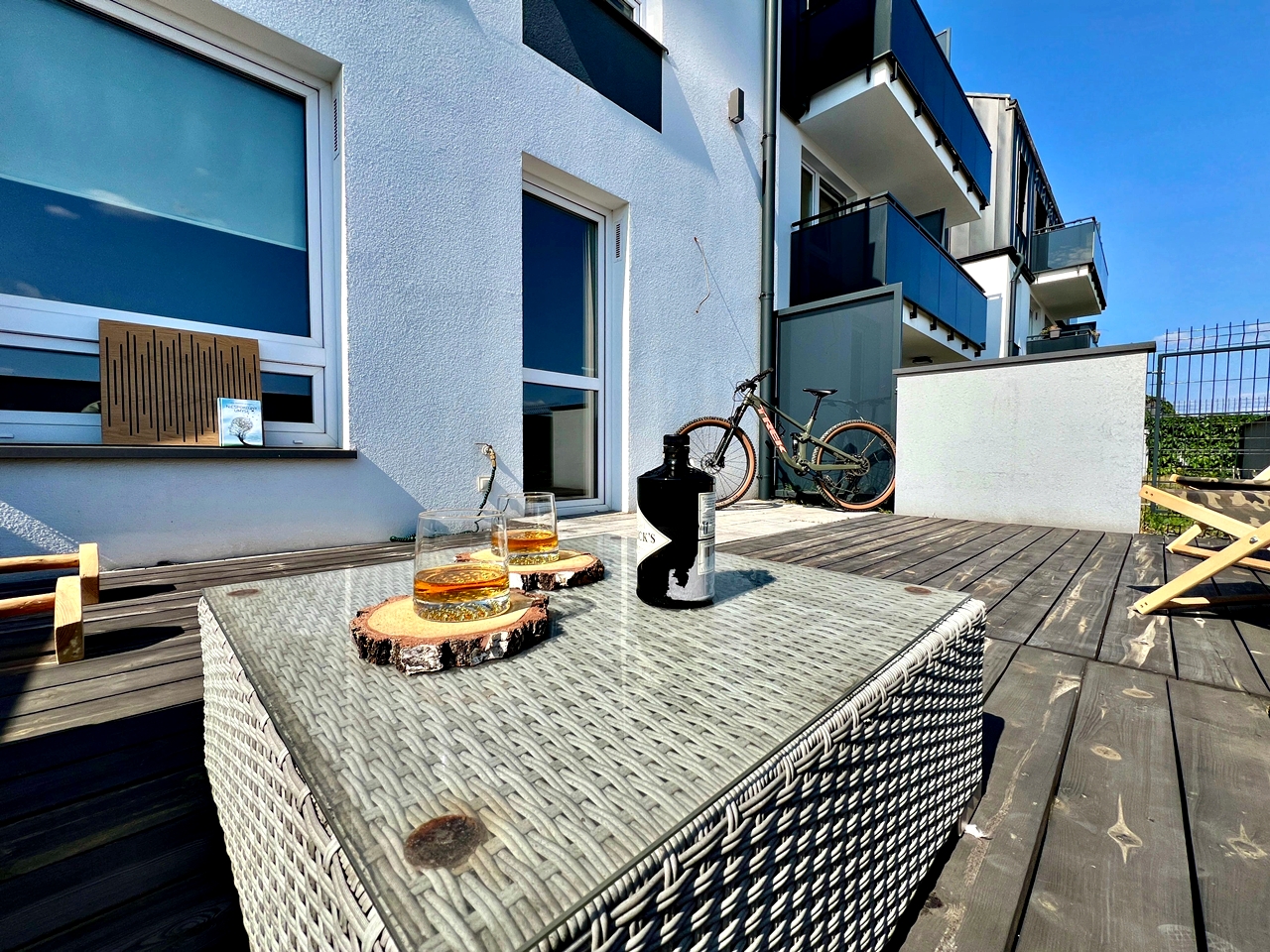 Do dyspozycji jest balkon o powierzchni 4,55 mkw oraz taras o powierzchni 19,35 mkw gdzie można spędzać wolny czas.