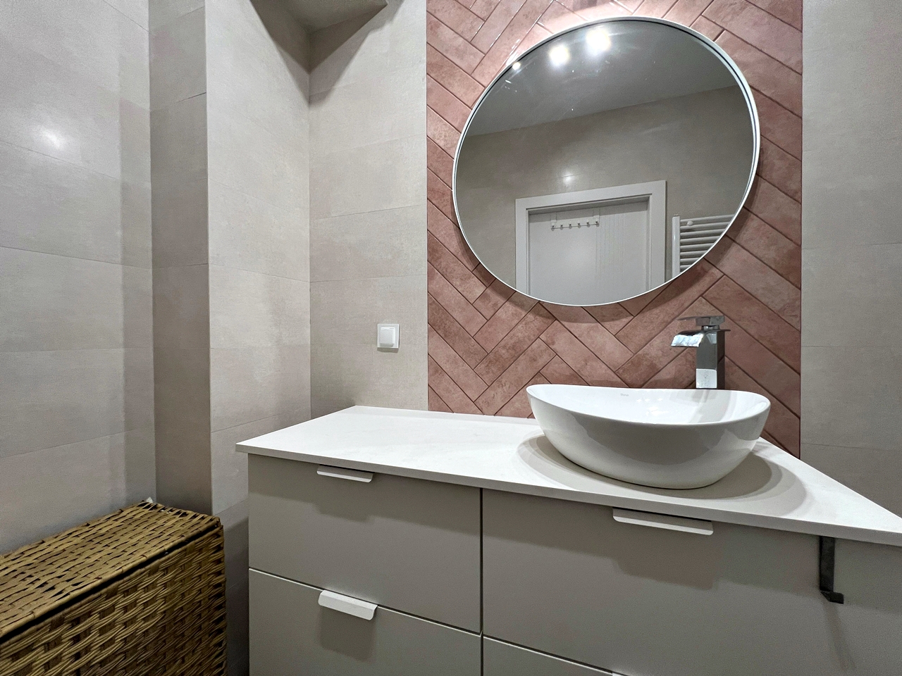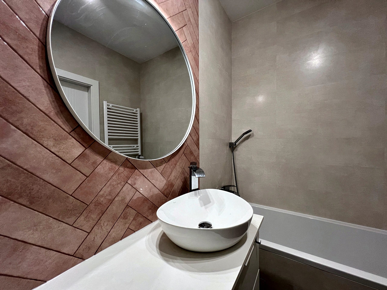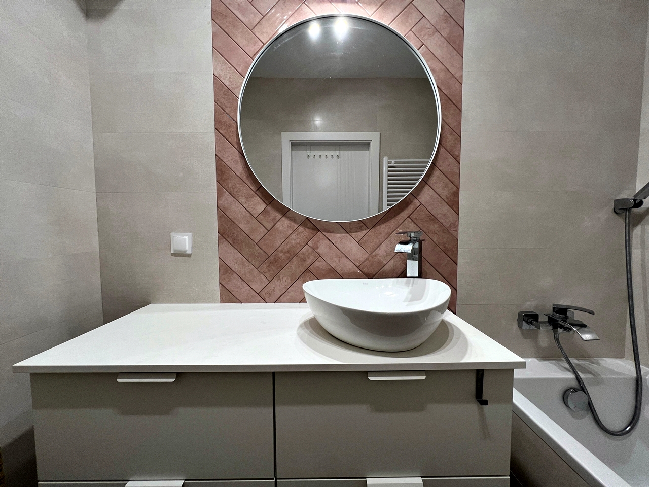 2 łazienki – jedna w stylu industrialnym z prysznicem i WC, druga elegancka z wanną,