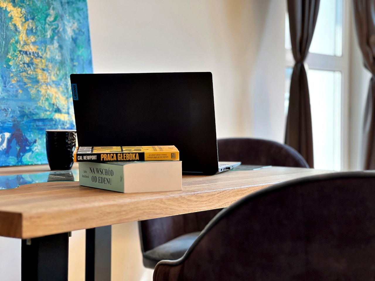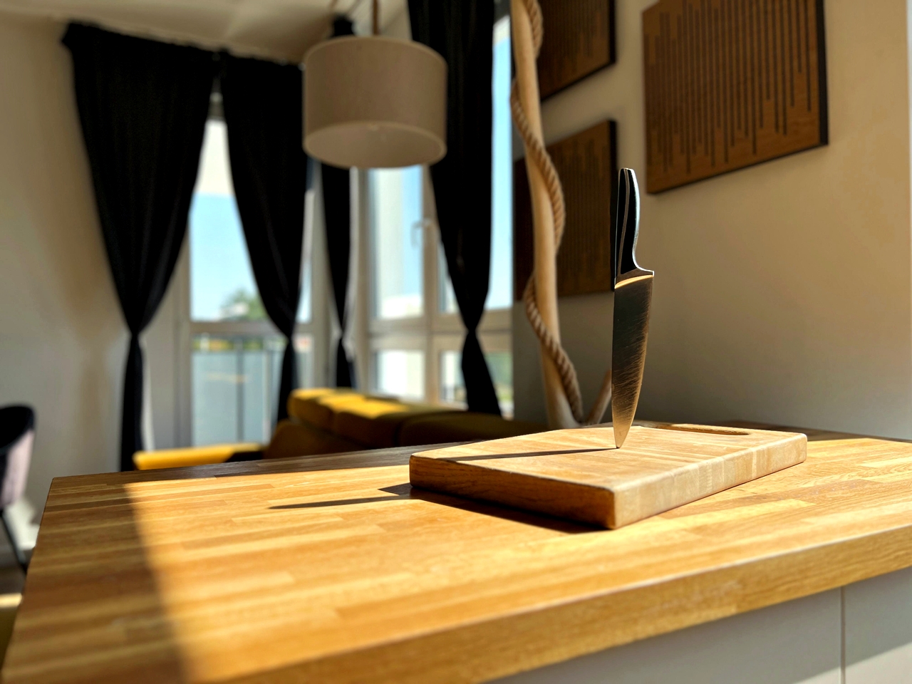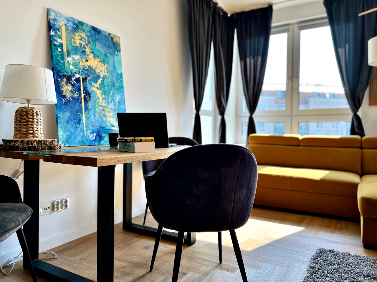 - salon z aneksem kuchennym – urządzony ze smakiem, w pełni wyposażony w sprzęt AGD, z wyjściem na balkon,